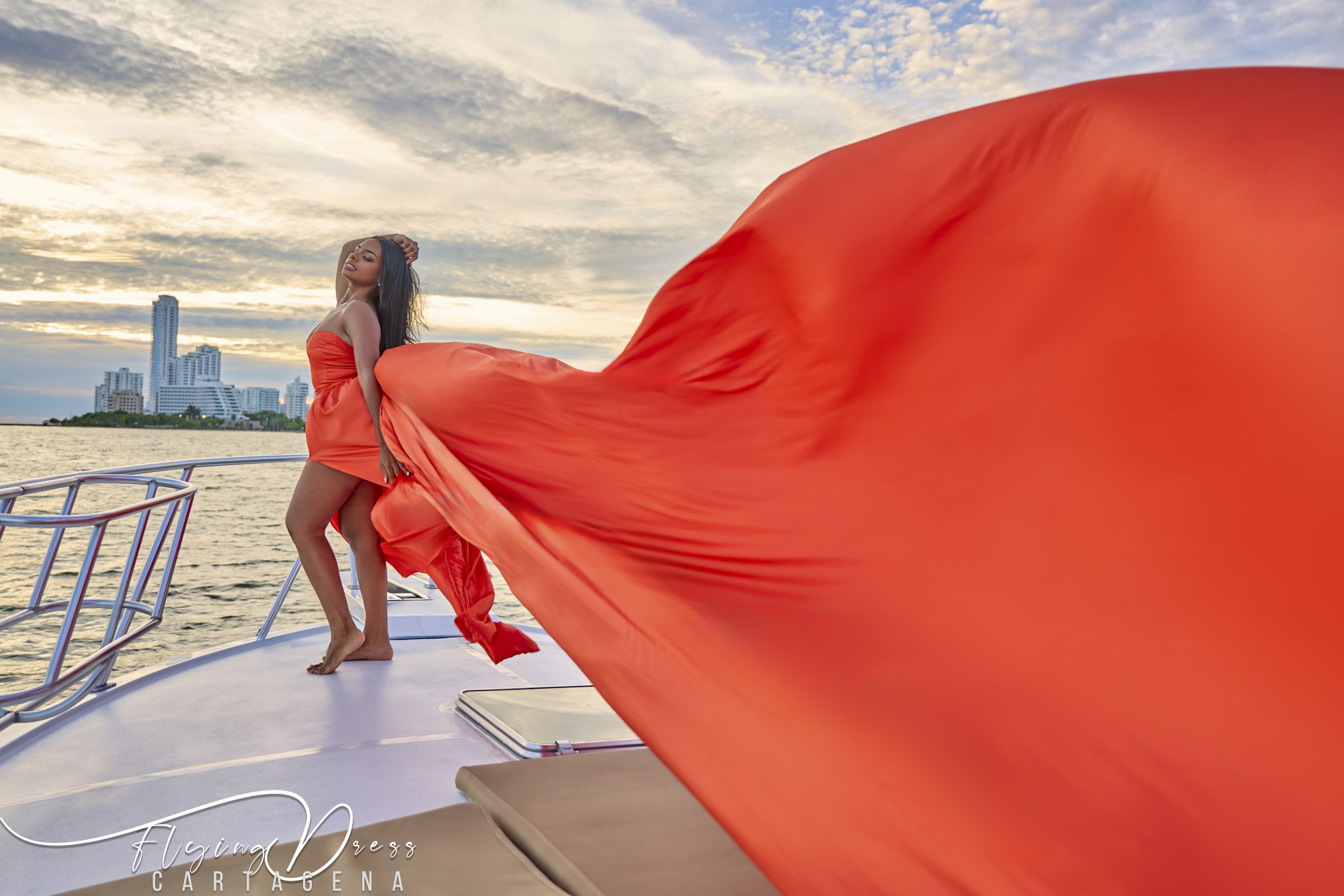 Flying Dress Cartagena: Luxury Group Photoshoot Experience on a Yacht