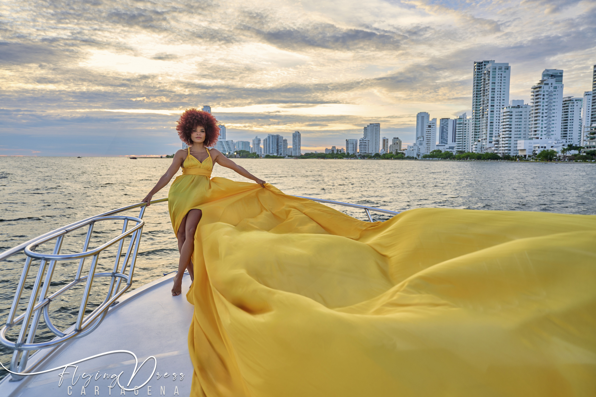 Discover the ultimate Flying Dress Cartagena experience with a luxury photoshoot aboard a private yacht in Cartagena Bay. Designed exclusively for groups of six or more, this glamorous activity combines stunning city views, professional photography, and the elegance of a flowing flying dress, making it a perfect choice for celebrating life’s most special moments.